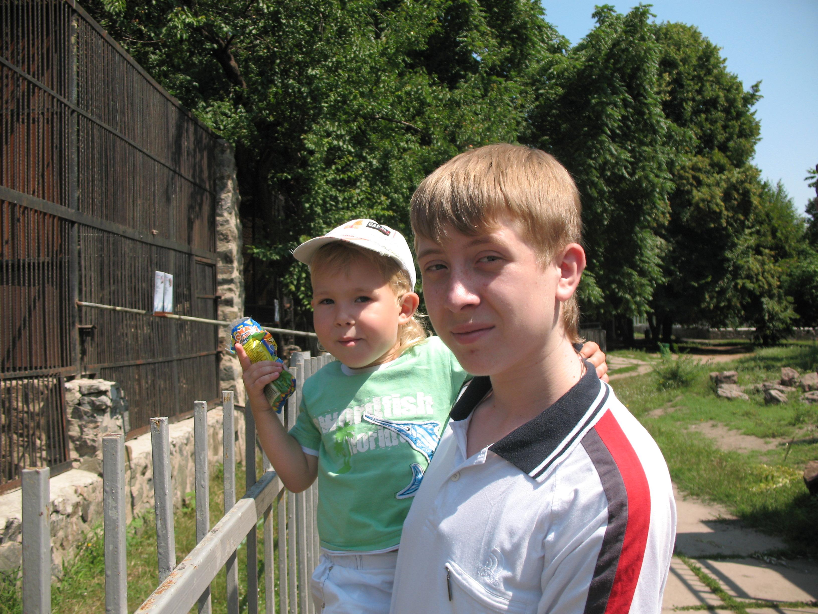 с братом в зоопарке
